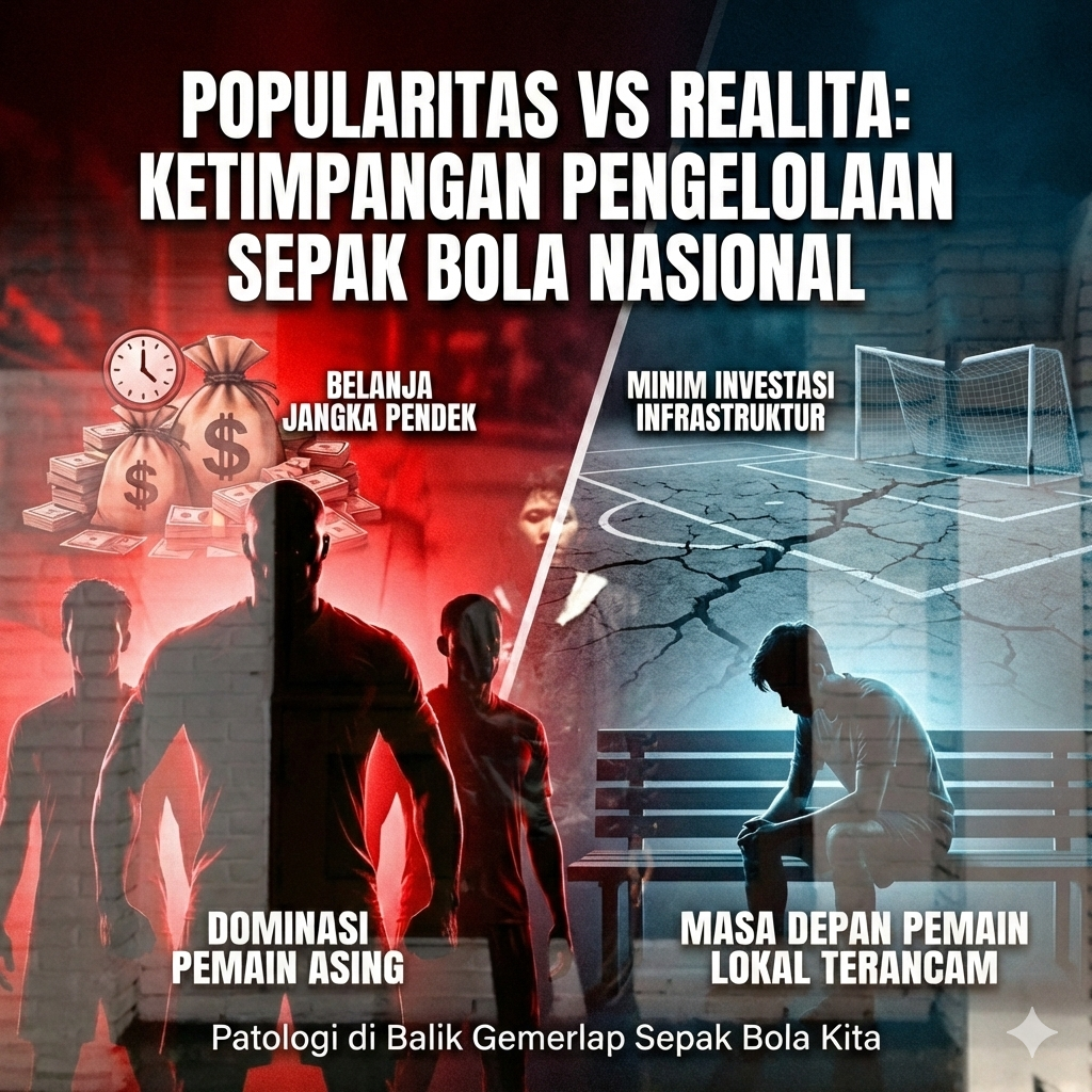 Popularitas sepak bola nasional menyimpan ketimpangan pengelolaan, mulai dari belanja jangka pendek, dominasi pemain asing, hingga minimnya investasi infrastruktur yang berdampak pada masa depan pemain lokal.